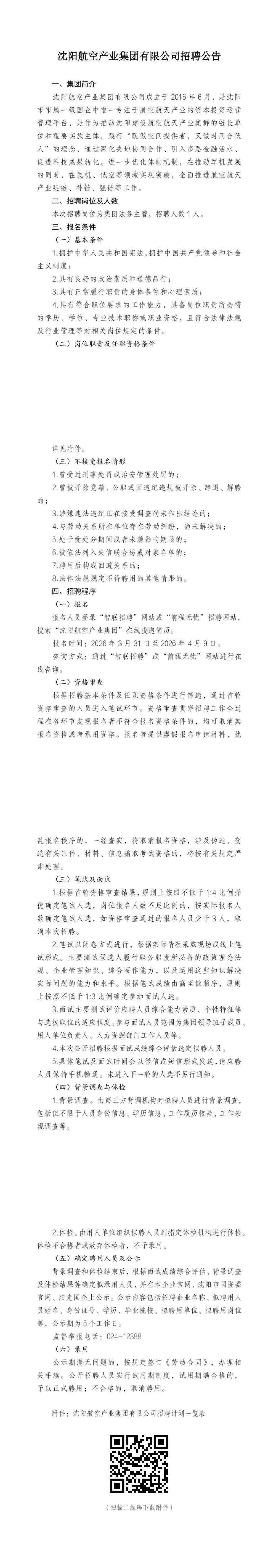 沈陽(yáng)航空產(chǎn)業(yè)集團(tuán)有限公司招聘公告